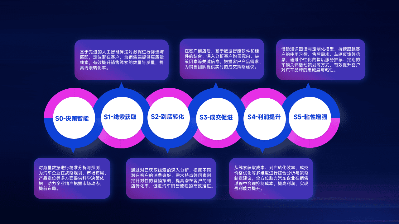 通过拓宽潜在客户来源、、、优化线索分配并提高到店转化率,,,以增强销售效率。。同时,,利用线索数据不断优化分析模型,,,,有效提升转化率,,,扩大营销影响力。。。